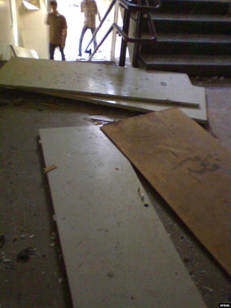 این شاهد عینی گفت که آتشی که در ورودی کوی روشن شده بود تنها به نگهبانی سرایت کرد اما شماری از اتاقهای ساختما شماره ۲۳ که مجاور خیابان بودند، بعد از شلیک مستقیم گاز اشکآور به داخل آنها آتش گرفتند.