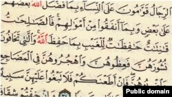 «و زنانى را كه از نافرمانى آنان بيم داريد [نخست] پندشان دهيد، [بعد] در خوابگاهها از ايشان دورى كنيد و [چنانچه تأثير نكرد] آنان را بزنید»! آیه ۳۴ سوره نساء، قرآن، کتاب مقدس مسلمانان.