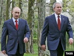 بوش و پوتین) ولادیمیر پوتین در دوران ریاست جمهوری خود سه بار با جرج بوش ملاقات کرد. از جمله در ۱۶ ژوئن ۲۰۰۱ در شهر لیوبلانا (جمهوری اسلوونی) بود. پس از این دیدار جرج بوش گفته بود که مستقیم به چشمان پوتین خیره شده و او را «فردی درست و قابل اعتماد» ارزیابی کرده است. علیرغم این استباط مثبت، مخالفت مسکو با مسایلی مانند جنگ علیه تروریسم (بعد از ۱۱ سپتامبر ۲۰۰۱) و مخالفت آمریکا با مداخله نظامی روسیه در گرجستان (۲۰۰۸) رابطه دو کشور را به سرعت به سمت نزولی سوق داد.