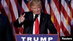آقای ترامپ در نخستین ساعات روز چهارشنبه، ۱۹ آبان‌ماه، با حضور در ستاد انتخاباتی خود در منهتن نیویورک در کنار خانواده و معاونش، مایک پنس، و نزدیک‌ترین مشاوران و همراهانش در کارزار چندین ماهه‌اش روی سن رفت و اولین سخنرانی‌اش را به عنوان رئیس جمهور منتخب آمریکا ایراد کرد.