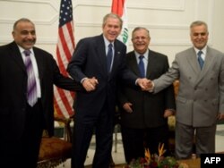 جرج بوش در دیدار با رییس جمهوری عراق و دو معاون او، رهبری آنها در عراق را ستود. با اين حال، ژنرال اوديرنو، فرمانده ارتش آمريكا در عراق اعلام كرد كه حتى پس از تاريخ تابستان آينده، تعدادى از نيروهاى آمريكاىى همچنان در شهرهاى عراقى باقى خواهند ماند.