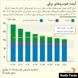 قیمت خودروهایی که نیروی محرکه خود را تماماً از انرژی برق میگیرند، تا چند سال پیش، بیش از دو برابر یک خودرو معمولی بود. اما سقوط حیرتآور قیمت باتری (مشابه همان نوعِ باتری که در لپتاپها استفاده میشود) قیمت این خودروها را تا حد چشمگیری پایین آورده؛ و جالبتر اینکه پیشبینیها حاکی از ارزانتر شدن خودروهای برقی از سال ۲۰۲۴ به بعد هستند.