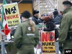 همزمان با آغاز اين نشست شماری از ايرانيان، که عمدتاً از سازمان مجاهدين خلق بودند، در برابر ساختمان محل اين نشست، در مخالفت با احتمال دستيابی جمهوری اسلامی به فناوری توليد سلاح هسته ای دست به تظاهرات زدند.