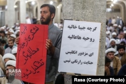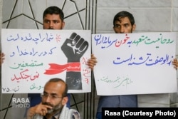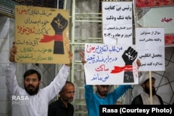 این طلبه نوشته که در برابر «فساد و تبعیض» ساکت نخواهد نشست. دستنوشته دوم در همین تصویر نیز طلبهای نوشته که «حنجره صدای کارگران شلاق خورده آقدره» است.
